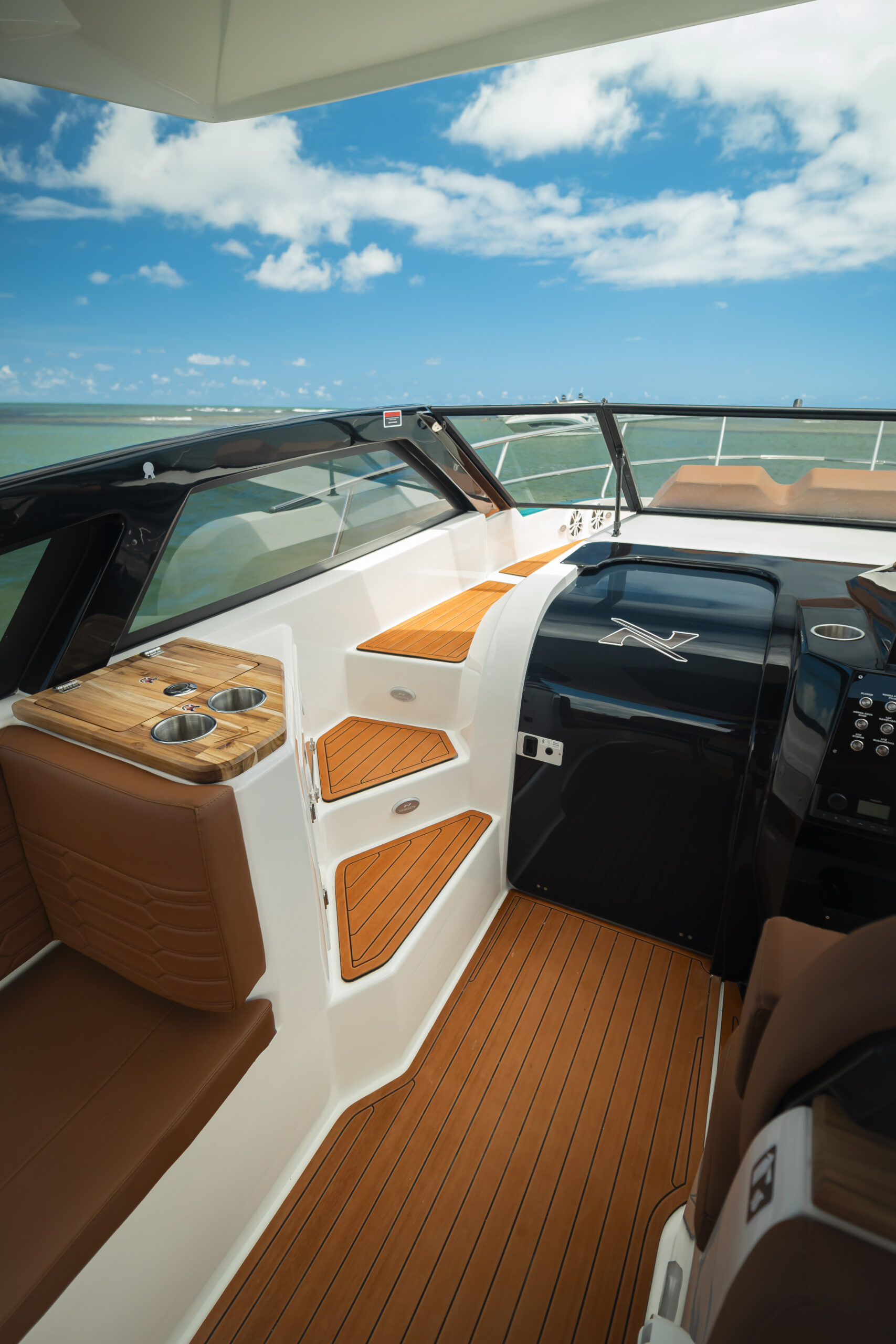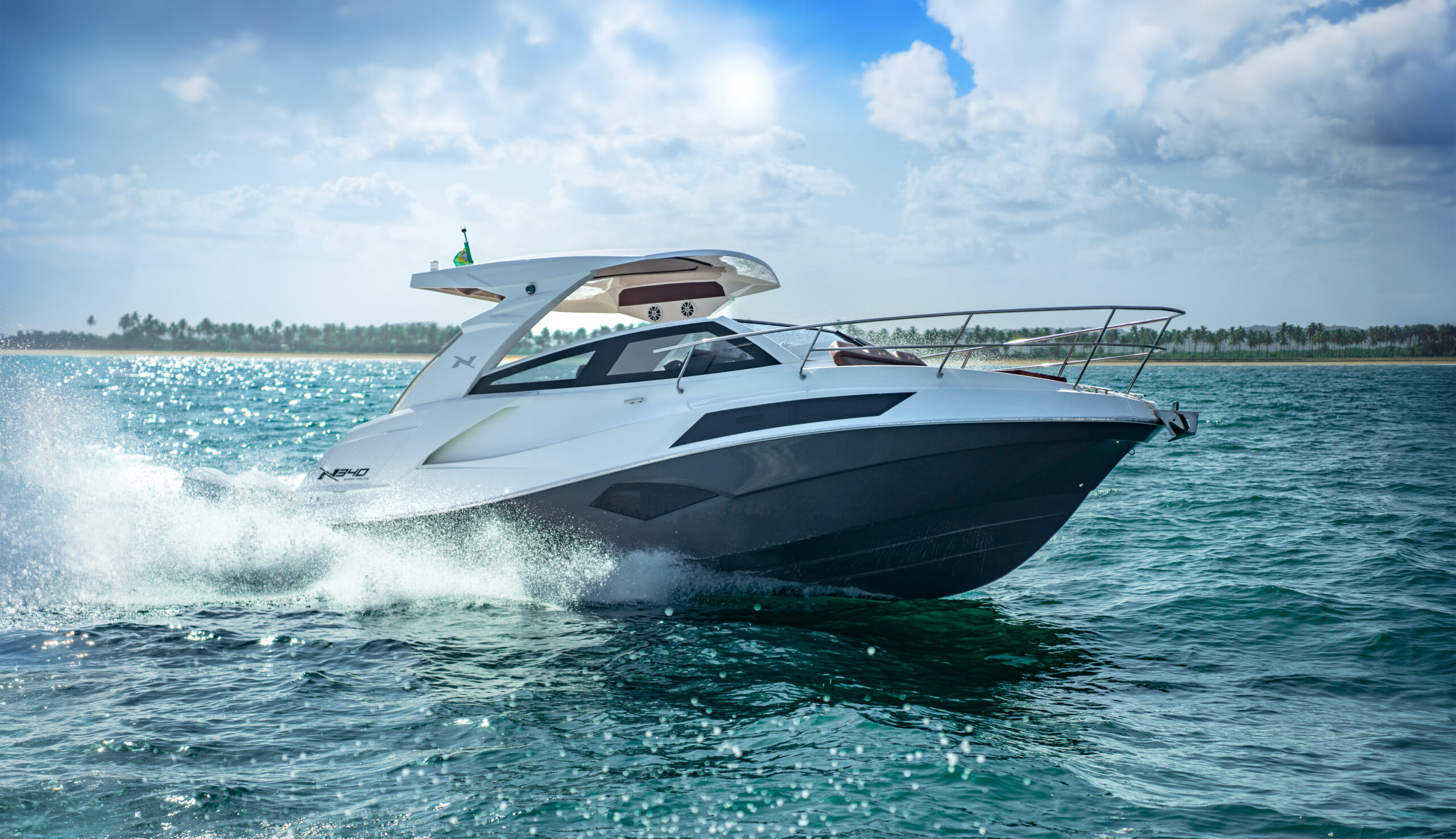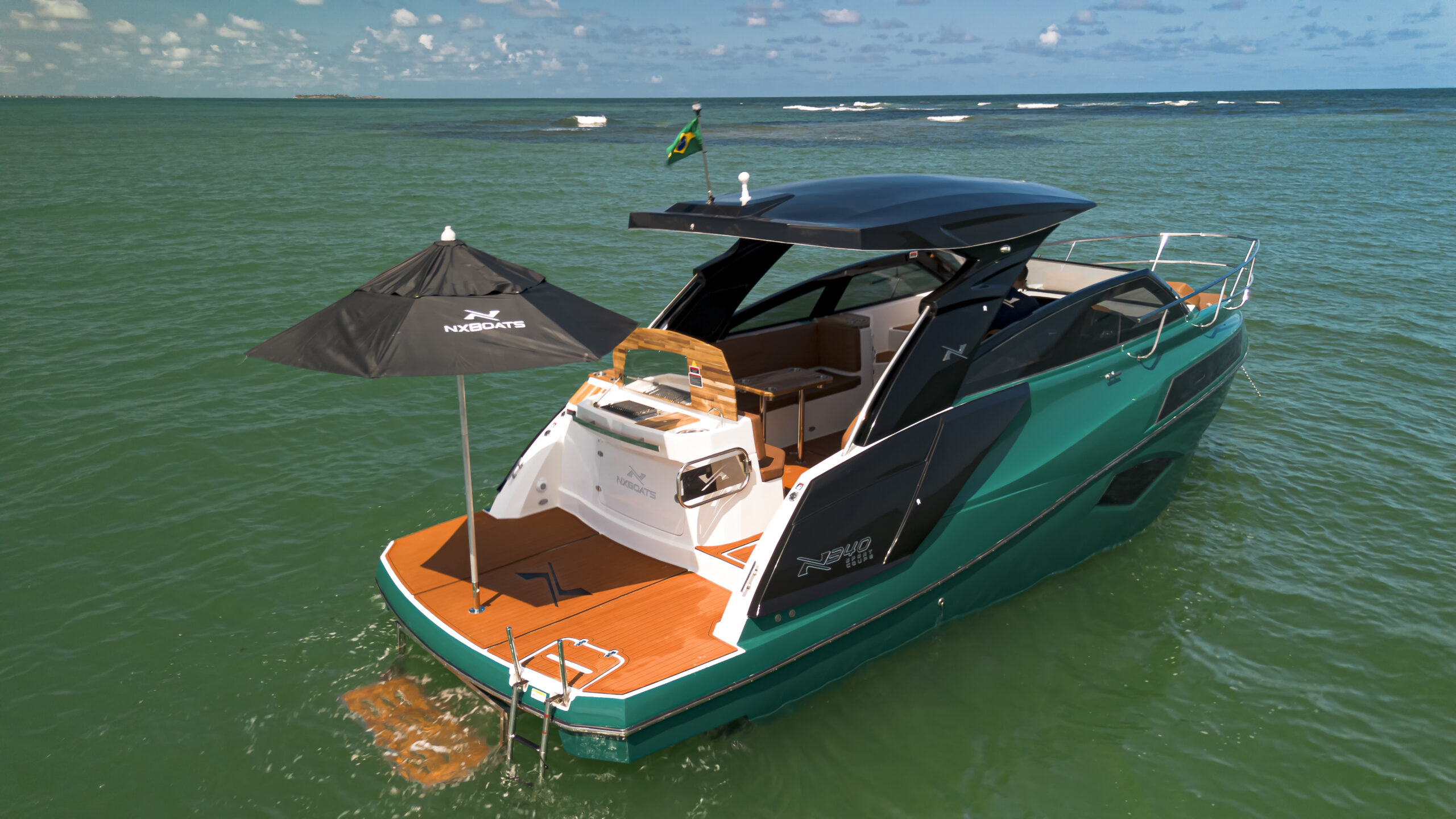 The NX340 Sport Coupé offers two concepts desired by sailing enthusiasts: the FREEDOM provided by the open-bow and the COMFORT that only a cabin boat can offer. Everything in one vessel.