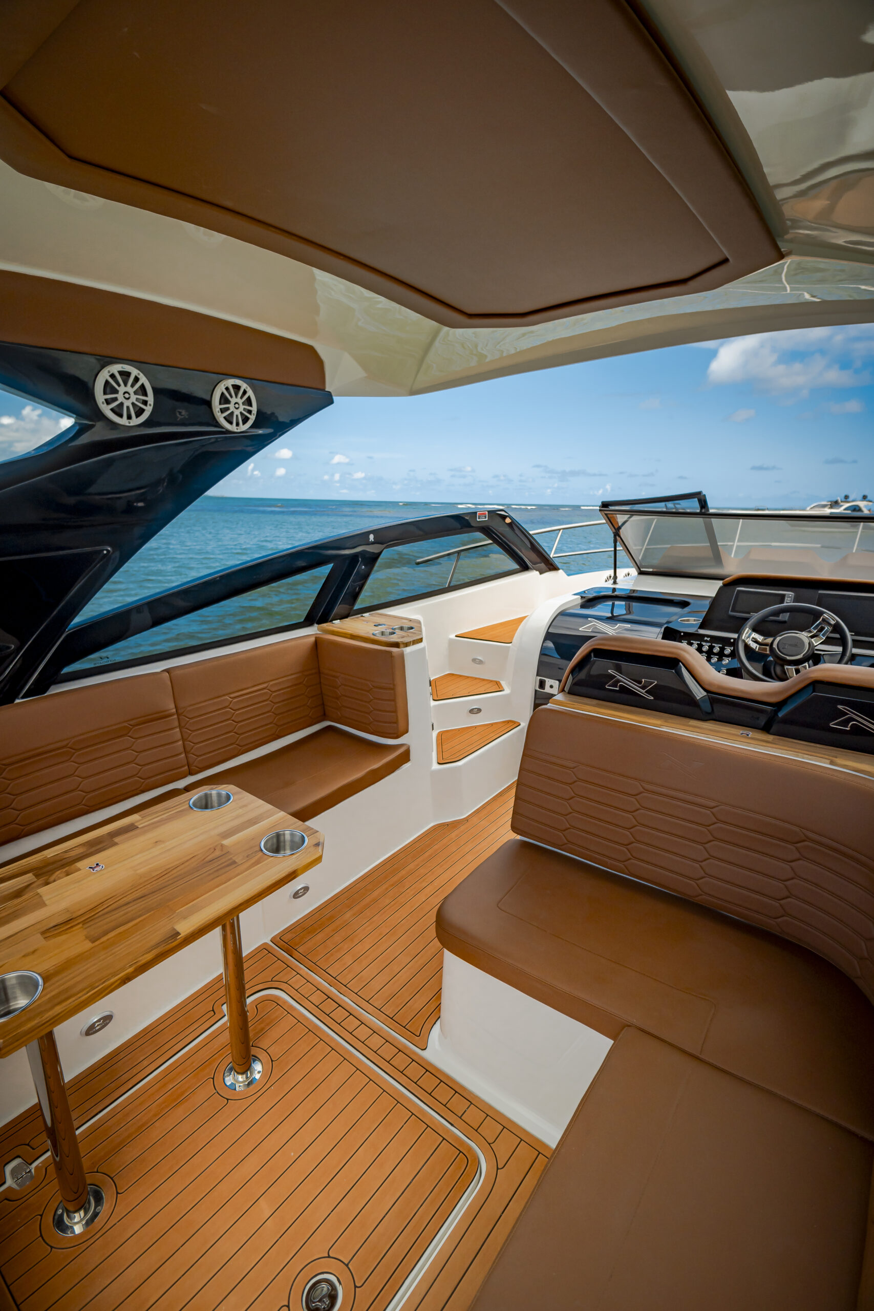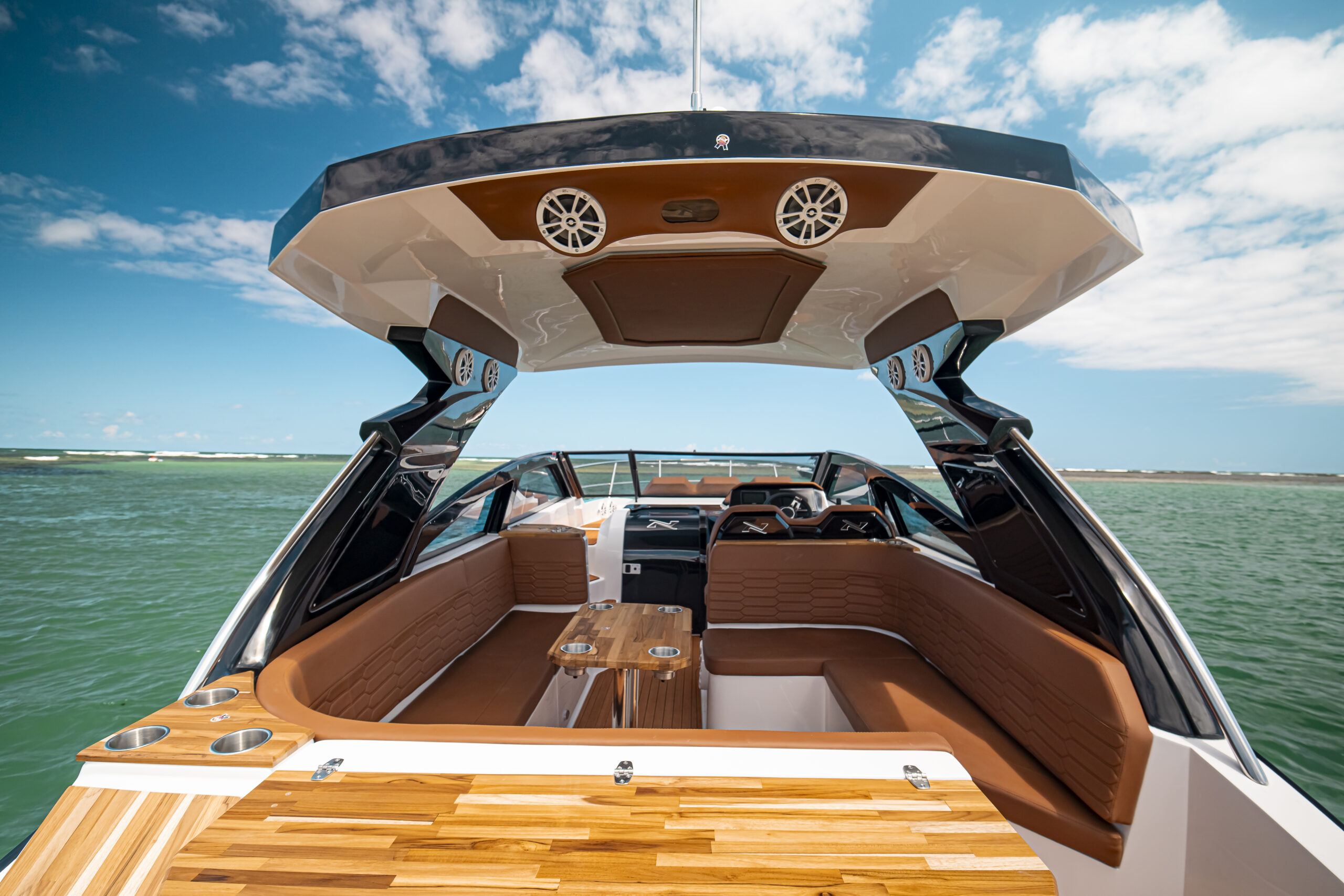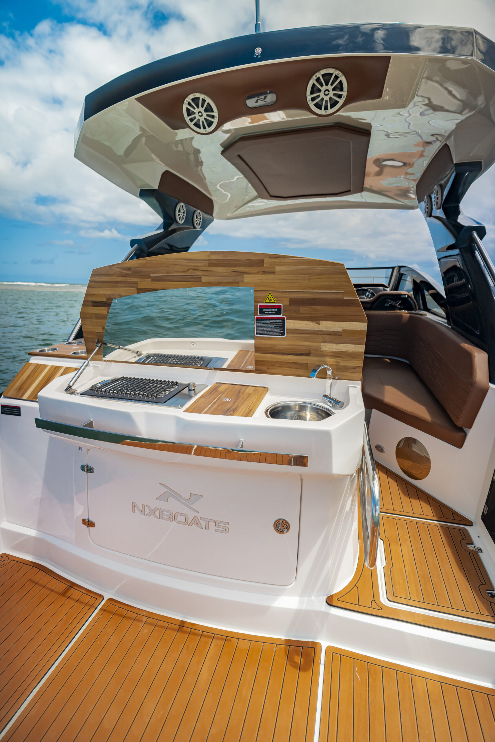 The NX340 Sport Coupé offers two concepts desired by sailing enthusiasts: the FREEDOM provided by the open-bow and the COMFORT that only a cabin boat can offer. Everything in one vessel.