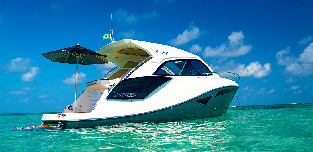 The NX370HT Sport launched a new generation of vessels that offer COMFORT and FREEDOM in an unprecedent way. The designed structure has the NX finishing standard, present throughout the entire boat. The striking and luxurious lines deliver a unique finish in its category.